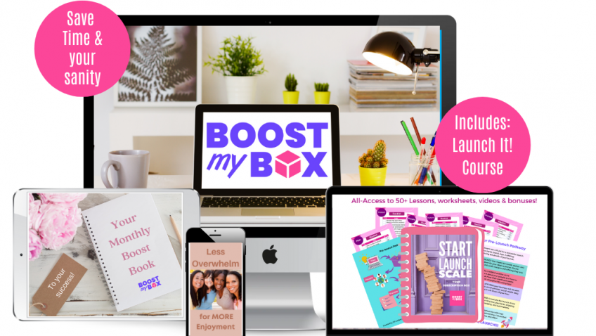 Includes How-to ebooks, workbook, videos, planner, coaching, and BONUS workshops to LAUNCH & SCALE with success!